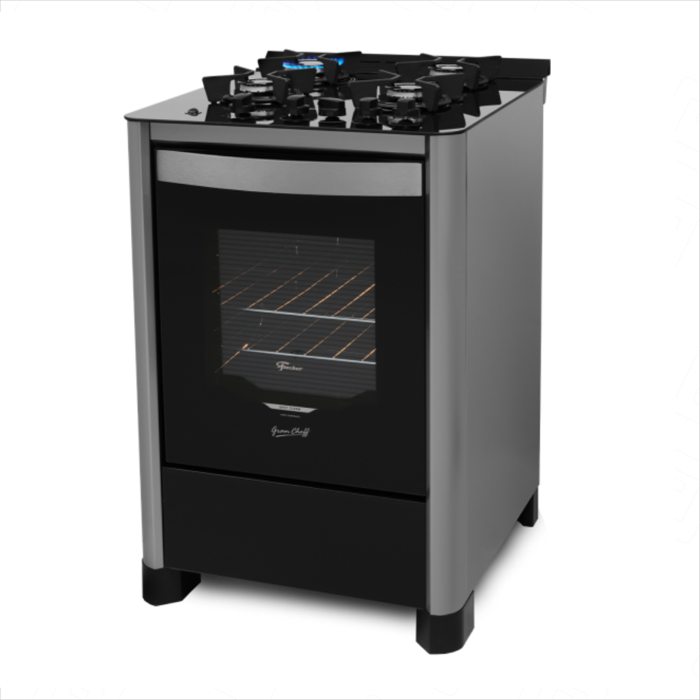 Fogão de Piso a Gás Fischer 4 Bocas Gran Cheff Mesa Vidro Preto – Bivolt